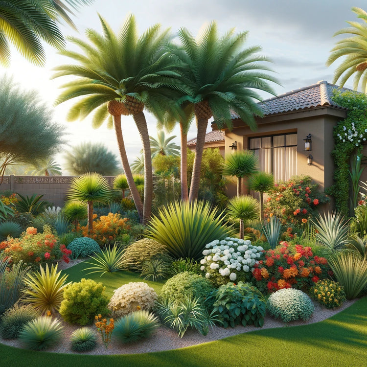 Imagine pulling up to your home in the heart of Arizona, where the desert's stark beauty meets an unexpected paradise of lush tropical landscaping. As you step out, you're greeted by the cooling shade of towering palms and the vibrant hues of exotic flowers, a stark contrast to the typical arid surroundings. The air is fresh and carries the soothing sound of water from a nearby fountain, blending seamlessly with the serene ambiance. This verdant oasis, thriving amidst the desert, transforms your home into a tranquil retreat, offering a daily escape into nature's embrace without ever leaving your property.