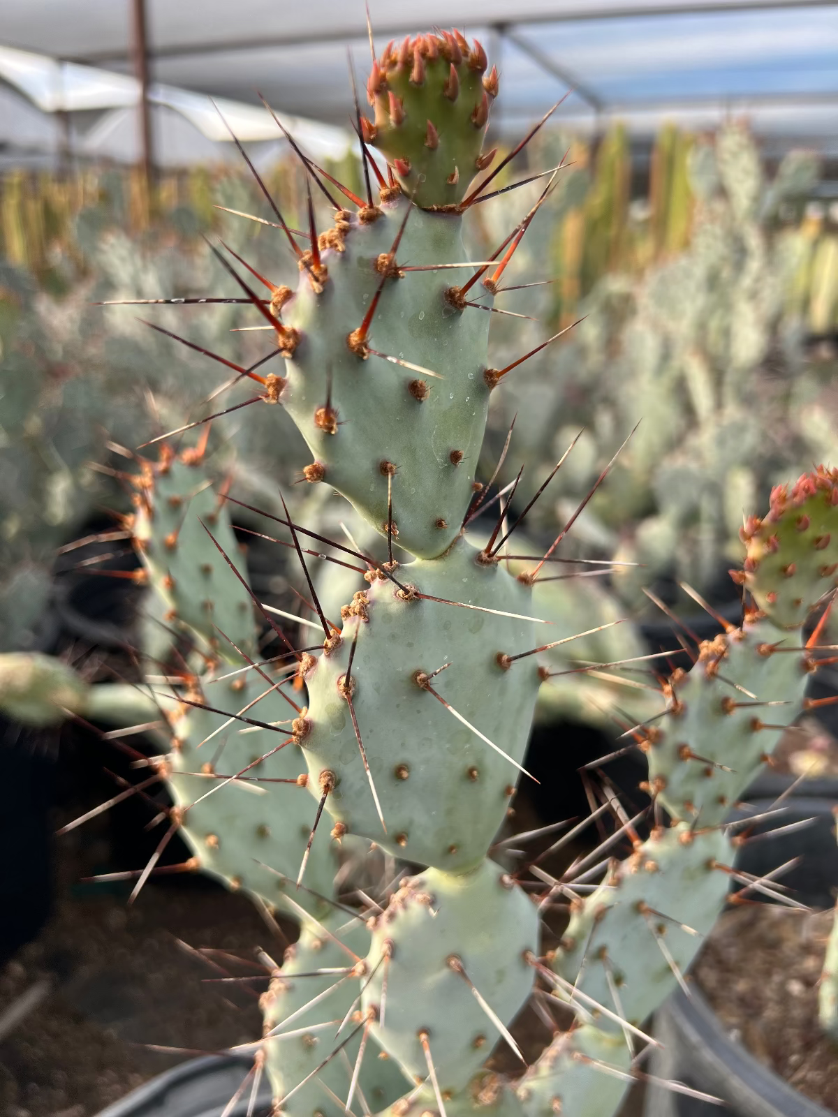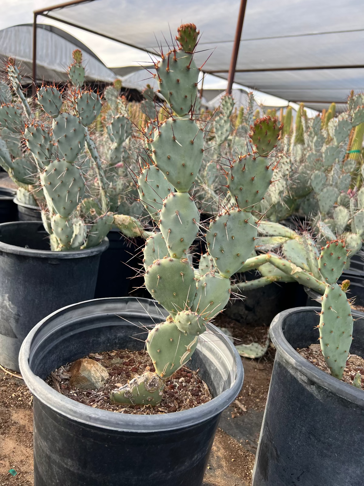 This variety is extremely hardy—cold tolerant down to 10°F and heat resistant above 110°F. Pruning is rarely necessary except to remove old or damaged pads. Because glochids (tiny hairlike bristles) are present, use gloves or tongs when handling.