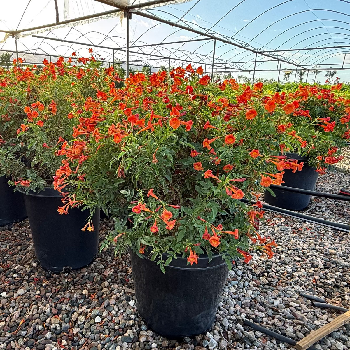 Bells of Fire, scientifically known as Tecoma 'Bells of Fire', is a hardy, low-maintenance shrub that brings tropical flair to Arizona landscapes with its vibrant red-orange flowers and compact growth habit. Ideal for the hot and arid climate, this plant is both visually striking and ecologically beneficial, attracting pollinators like hummingbirds and butterflies.