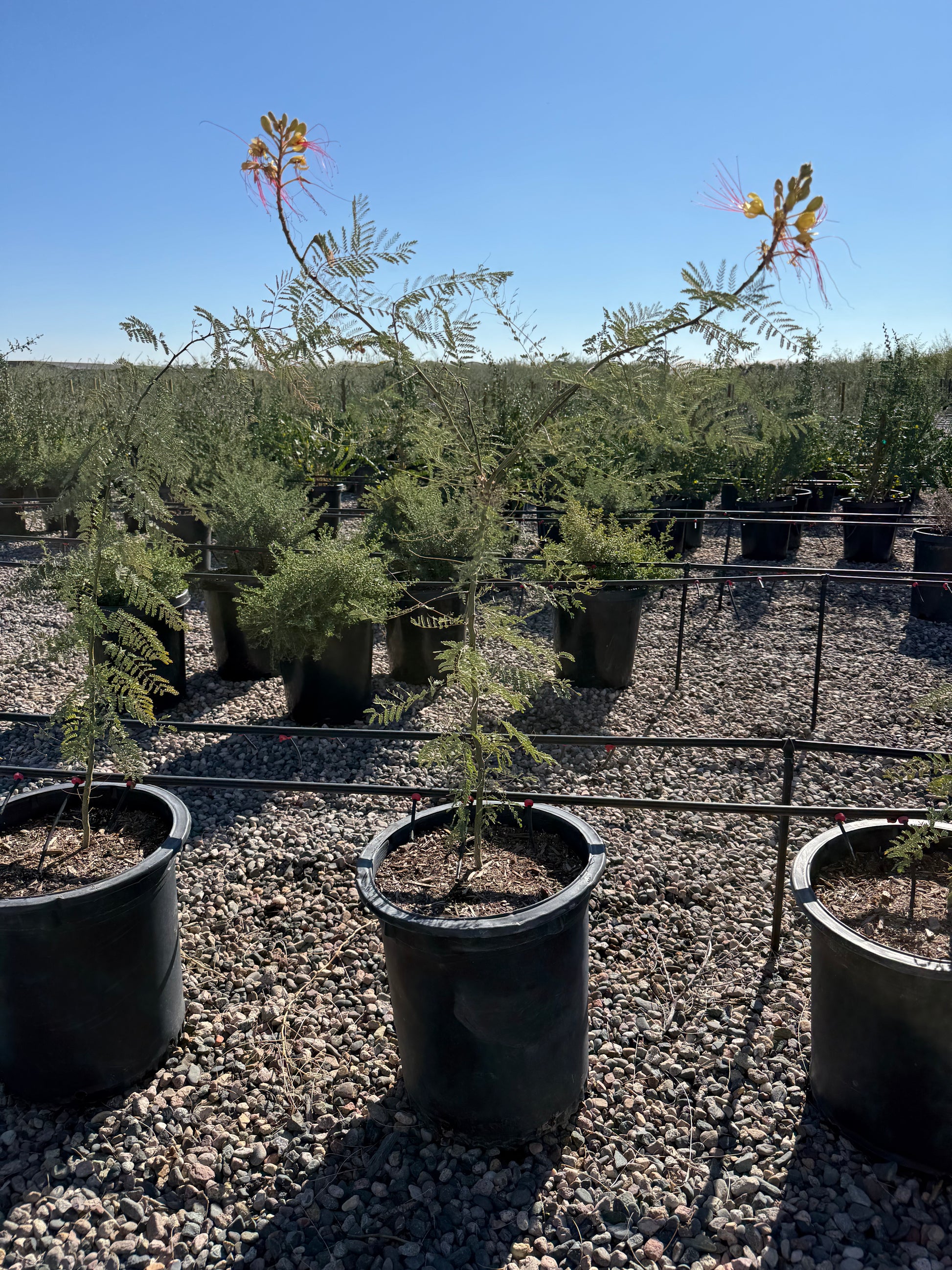 The Desert Bird of Paradise is versatile and works well as a focal point, in group plantings, or as part of a mixed border. Its colorful blooms and fine foliage add a touch of tropical elegance to desert landscapes, while its drought tolerance and easy care make it a practical choice for sustainable garden designs.