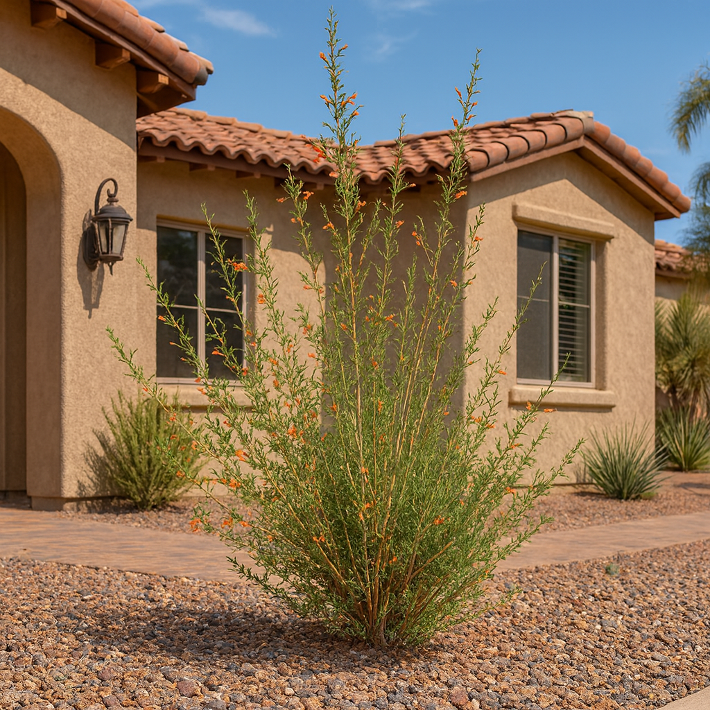 Desert Honeysuckle (Anisacanthus thurberi) is a vibrant, drought-tolerant perennial native to the Sonoran Desert. Known for its long bloom season, fast growth, and hummingbird-attracting flowers, this shrub-like perennial is perfect for adding soft texture and bold color to Arizona landscapes without requiring much water or care.