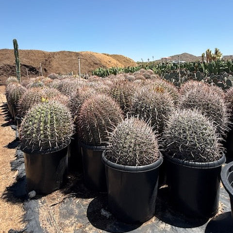 Growing 1 to 3 feet tall and 1 to 2 feet wide, the Fishhook Barrel Cactus is perfect for rock gardens, xeriscaping, and drought-tolerant landscapes in Phoenix and surrounding areas. Its cylindrical, ribbed body is adorned with clusters of reddish-brown or gray spines that give it a robust appearance, making it a focal point in any desert garden design.