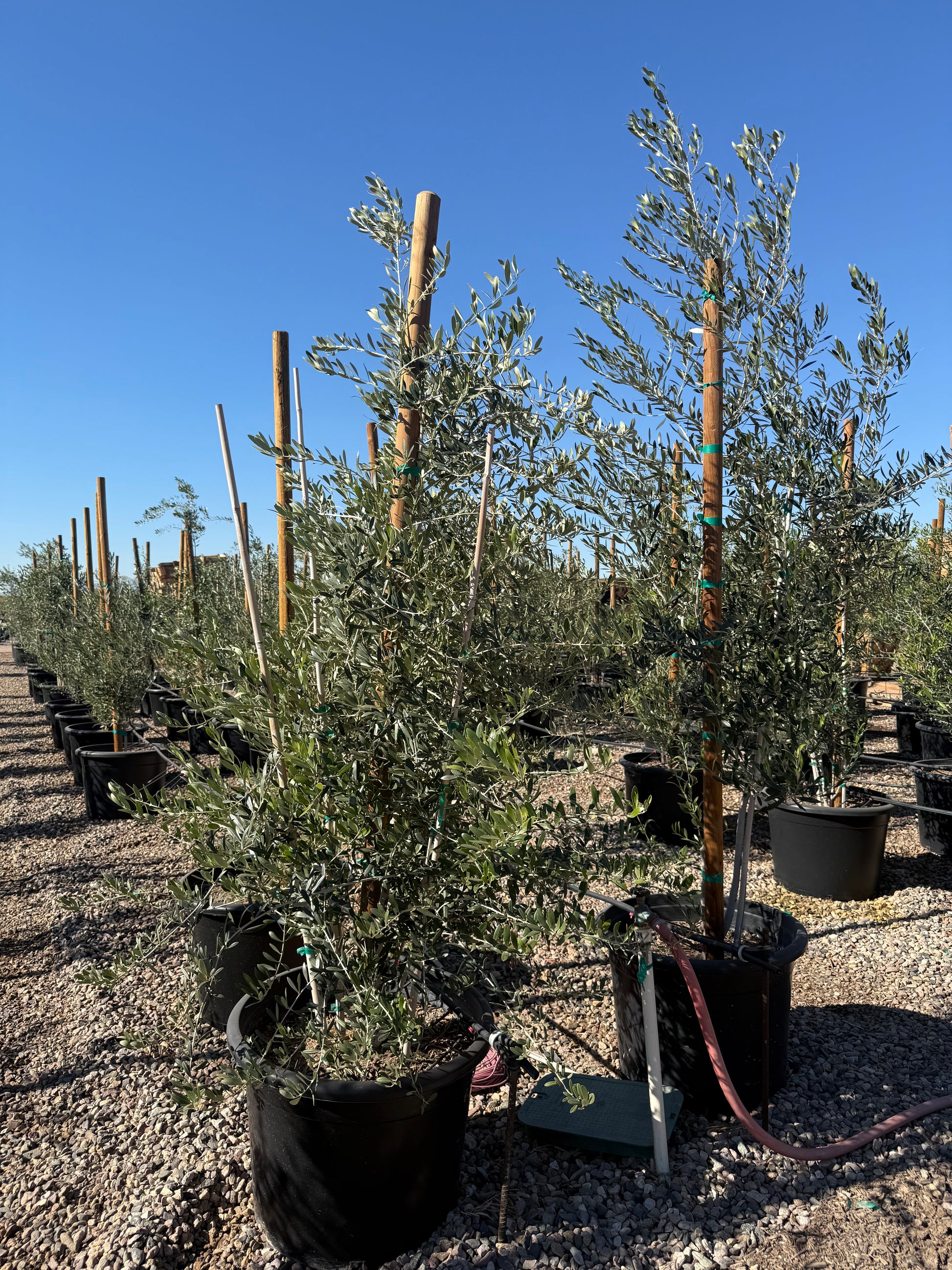 The Fruitless Olive (Olea europaea ‘Wilsonii’) is a refined evergreen tree prized for its silvery-green foliage, gnarled branching, and Mediterranean charm. Unlike fruit-bearing olives, this variety does not produce messy fruit, making it an ideal landscape tree for Arizona homes. With its sculptural form and drought tolerance, it is both functional and ornamental, adding timeless beauty to modern and traditional landscapes alike.