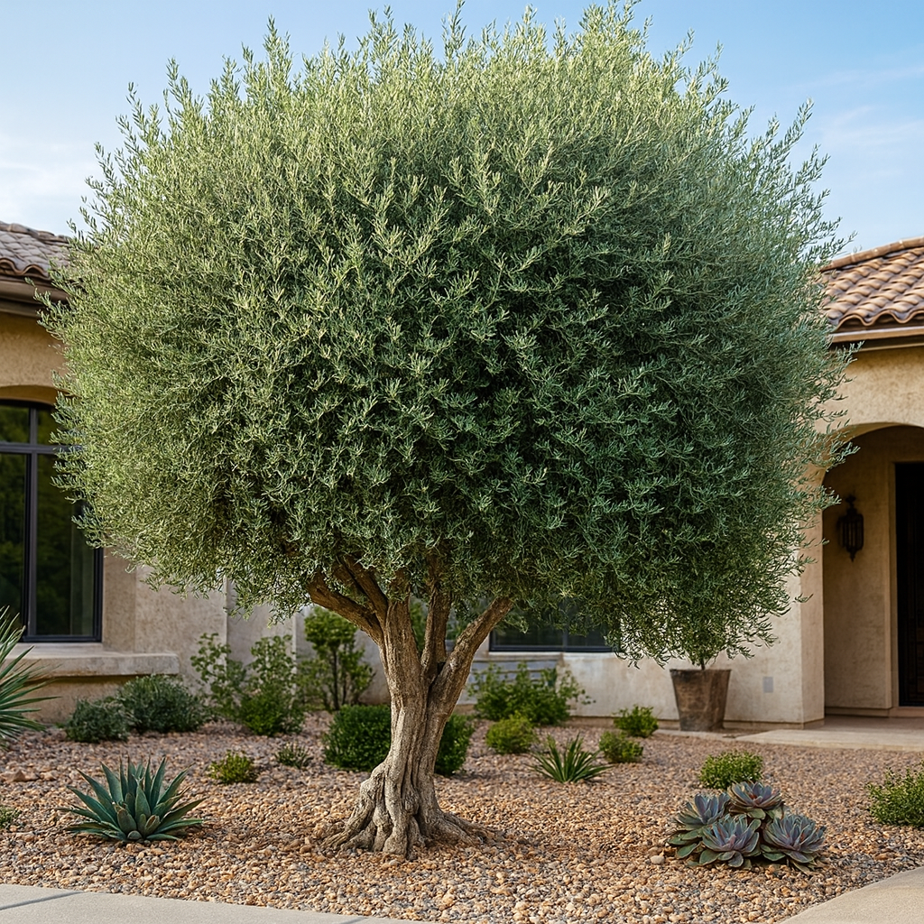 The Fruitless Olive Tree combines Mediterranean beauty with Arizona practicality. With its low maintenance, graceful evergreen canopy, and sculptural form, it’s an excellent choice for homeowners who want the elegance of an olive tree without the mess of falling fruit. Hardy and waterwise, this tree is a long-term investment in timeless curb appeal.