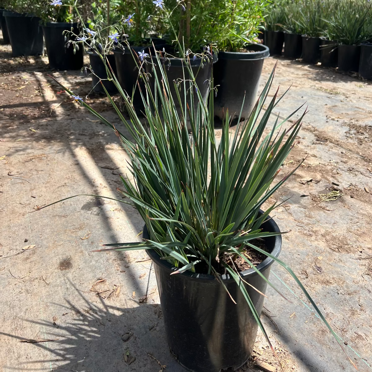Little Rev Flax Lily is a neat, compact form of Dianella revoluta, valued for its tidy, upright blue-green foliage and small spikes of violet-blue flowers. Perfect for modern, structured landscapes or low-maintenance gardens, it provides year-round texture and subtle seasonal color.