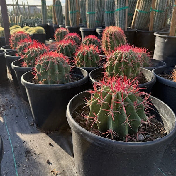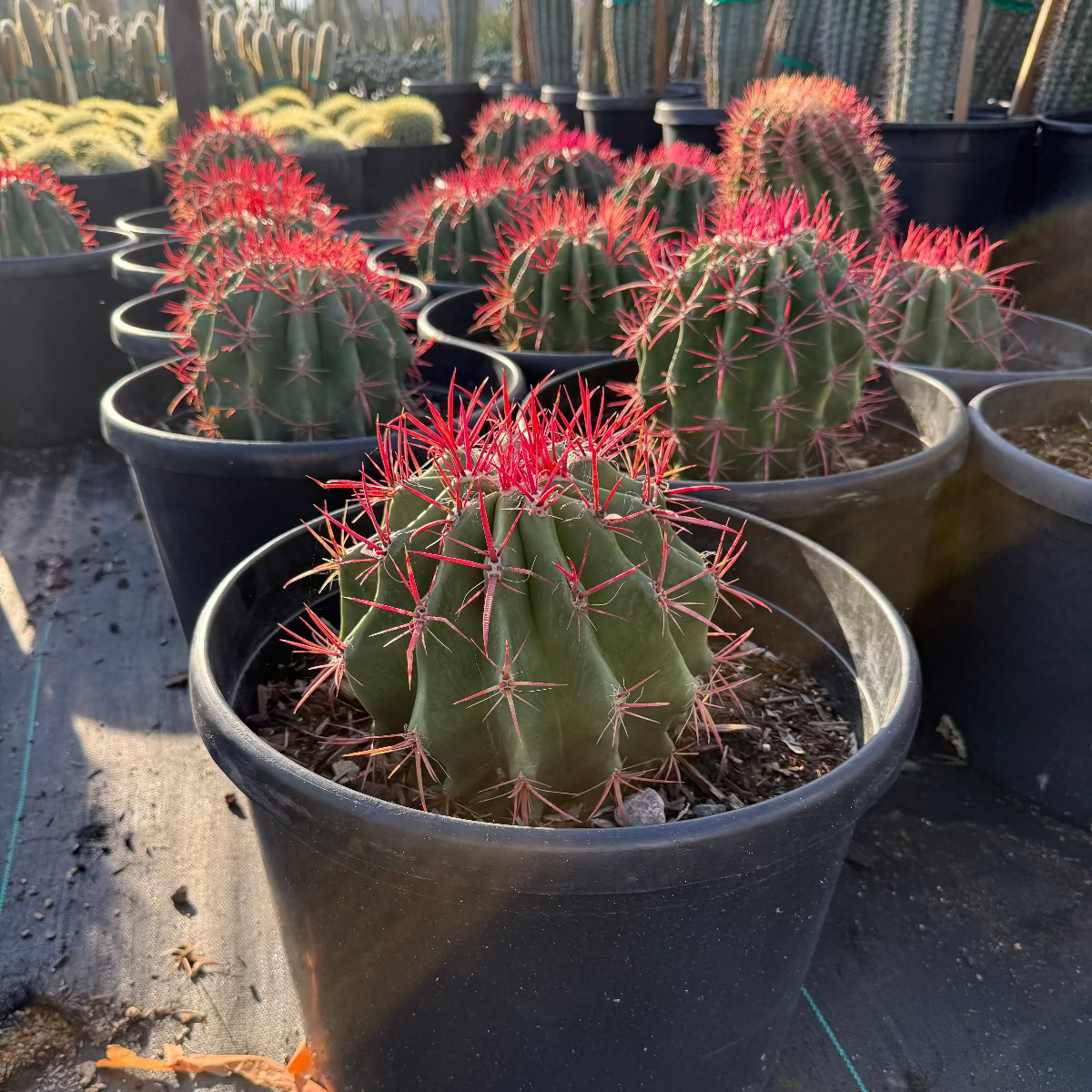 In summary, the Mexican Fire Barrel cactus is a striking and easy-to-care-for plant that brings color, texture, and a sense of the exotic to any landscape. Its fiery red spines and bright blooms make it a favorite for desert gardens, succulent collections, and container displays.