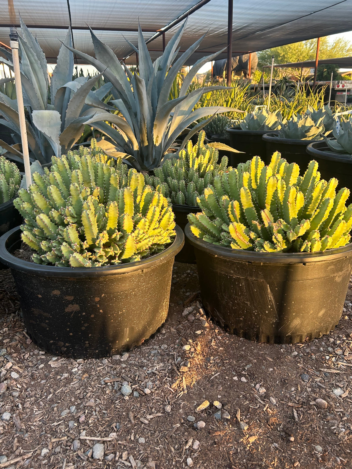 The Moroccan Mound (Euphorbia resinifera) is the perfect plant for Phoenix gardeners seeking a low-maintenance, drought-tolerant addition to their landscape. Its unique form and spiny texture create visual interest, while its ability to thrive with minimal water makes it an excellent choice for xeriscaping and desert-themed gardens. Whether used as a ground cover or a standalone accent, this succulent will add a touch of exotic elegance to any outdoor space.