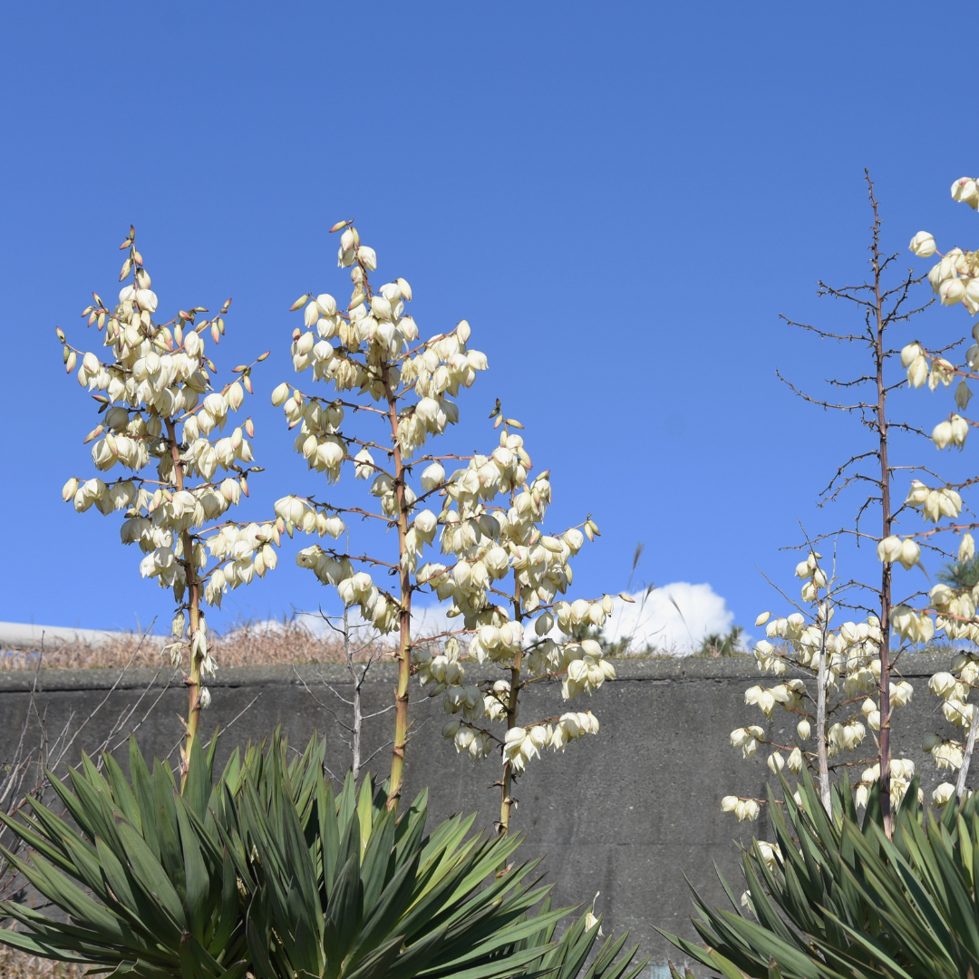 - Tall, Creamy White Blooms: In late summer to early fall, Spanish Dagger sends up spikes of creamy white, fragrant flowers tinged with pink or purple. These tall flower spikes, which can reach several feet in height, create a stunning vertical display that attracts pollinators like moths and bees.