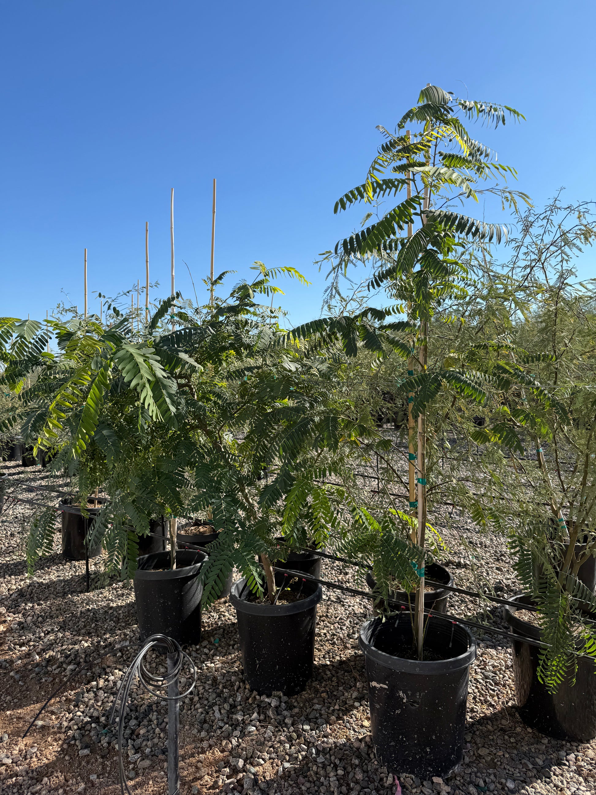 The Tipu Tree boasts a broad canopy of bright green, pinnate leaves that turn a lovely golden-yellow in fall, providing both seasonal interest and a lush, shaded environment. This dense canopy makes the tree an ideal choice for shading large areas in parks, gardens, and along streets. -