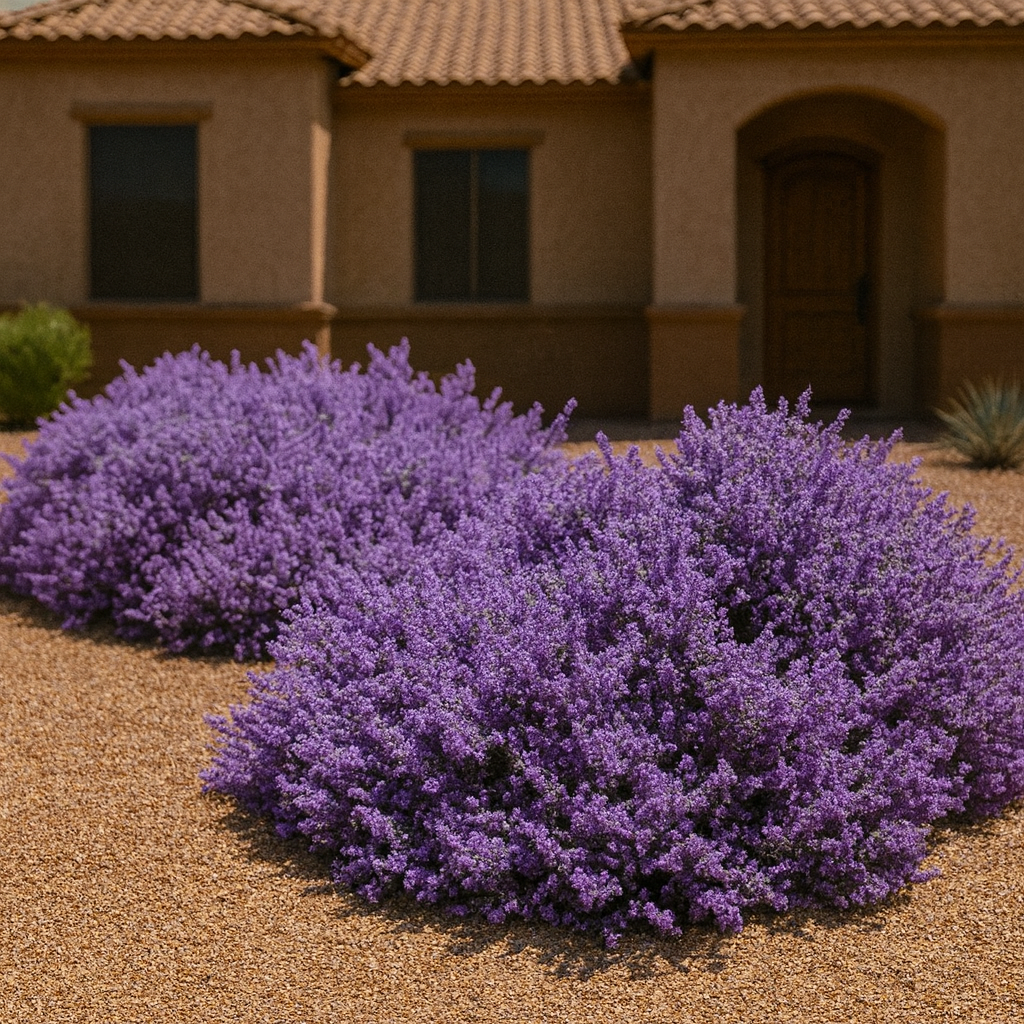 Upright Blue Ranger offers a refined vertical habit, vibrant seasonal flowers, and low-water adaptability. It’s a top choice for Arizona gardens needing both structure and bursts of color during the summer monsoon season.